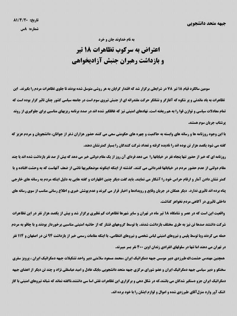 Jebheh Mottahed Daneshjouyee-eterAz beh sarkoobeh 18-Tir